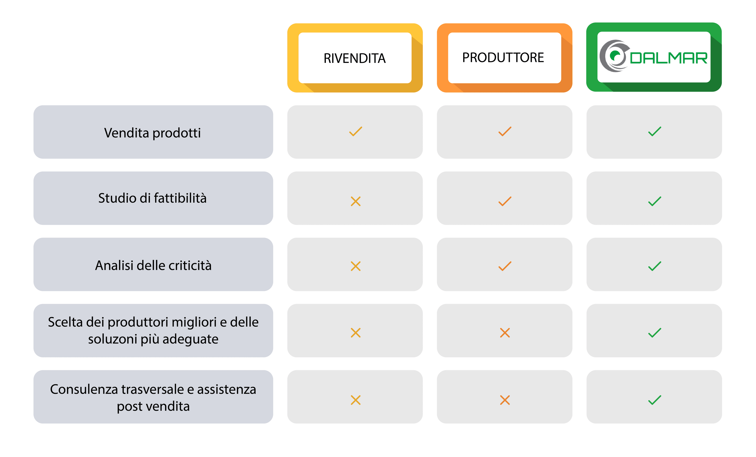 3- Assistenza post vendita: qualsiasi sia la soluzione adoperata è necessario del tempo per poter verificare che funzioni come preventivato, in questa fase Dalmar non ti lascia mai da solo, fornendoti tutta l'assistenza necessaria per questa importante fase.